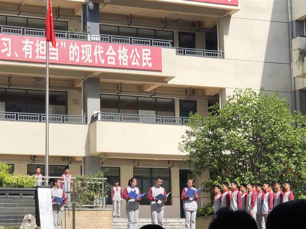 升旗仪式后,主持人左心怡、李翔宇宣布本周主题为《弘扬民族精神,做了不起的中国人》,在中华民族五千年的历史长河中,曾涌现过多少风流人物、仁人志士。正如鲁迅先生所说:“我们自古以来,就有埋头苦干的人,有拼命硬干的人,有为民请命的人,有舍身求法的人——这就是中国人的脊梁。”接下来由我班杨宸、李晨雨、尹茜、周业帅同学带来《我的祖国》主题朗诵。
