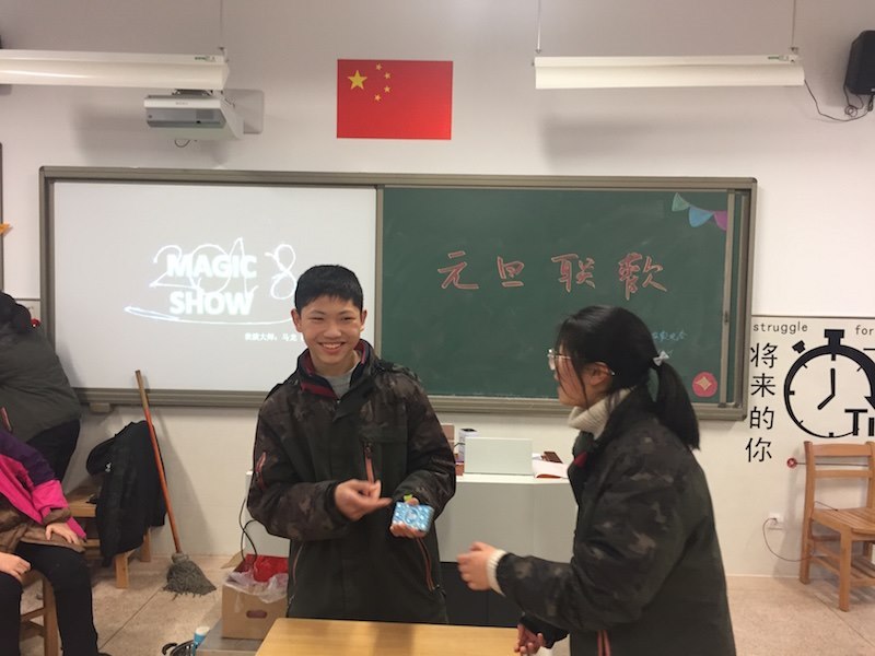Magic show来了,马龙的魔术引起了大家浓厚的兴趣。接着柳阳同学和文熙同学仅靠一部计算机和几个五位数字生动诠释了什么叫高智商魔术表演,更引得同学叹为观止。