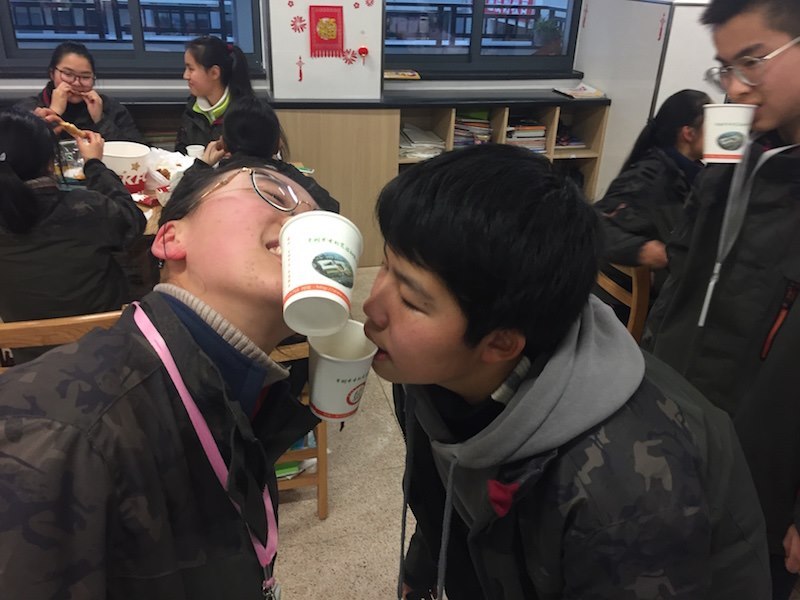 接下来的游戏和抽奖活动也是同学们期待的环节,我们小组很“幸运”地被抽中,在我拙劣的肢体表演和偷偷提醒中,陈泽亮同学赢得了一个本子的奖品,真是可喜可乐。
